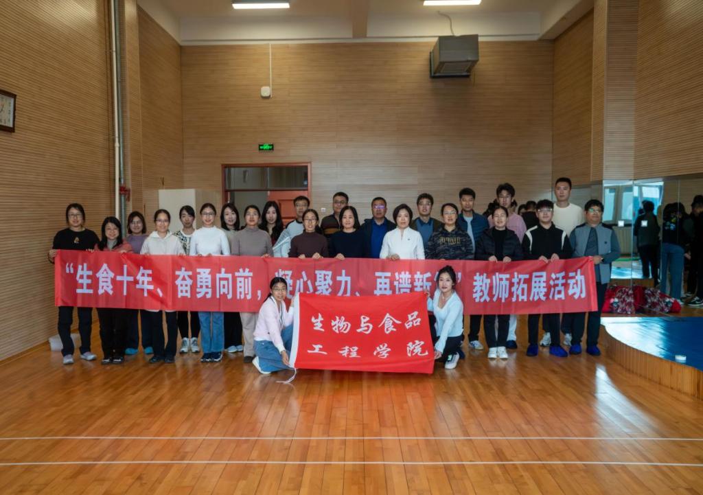 生物与食品工程学院于2014年9月18日成立,10年来,学院始终坚持为党育人、为国育才,坚持立德树人根本任务,不断创新教育教学引领、优化提升学科科研,扎实提高本科生的培养质量,不断提升学院核心竞争力和社会服务贡献度。为庆祝学院成立十周年,增强教师团队凝聚力,提升教师职业幸福感,努力开创学院高质量发展新的黄金期。学院于2024年11月13日在体育馆特举办“生食十年、奋勇向前,凝心聚力、再谱新篇”教师拓展活动。学院领导班子、全体教师参加此次活动。