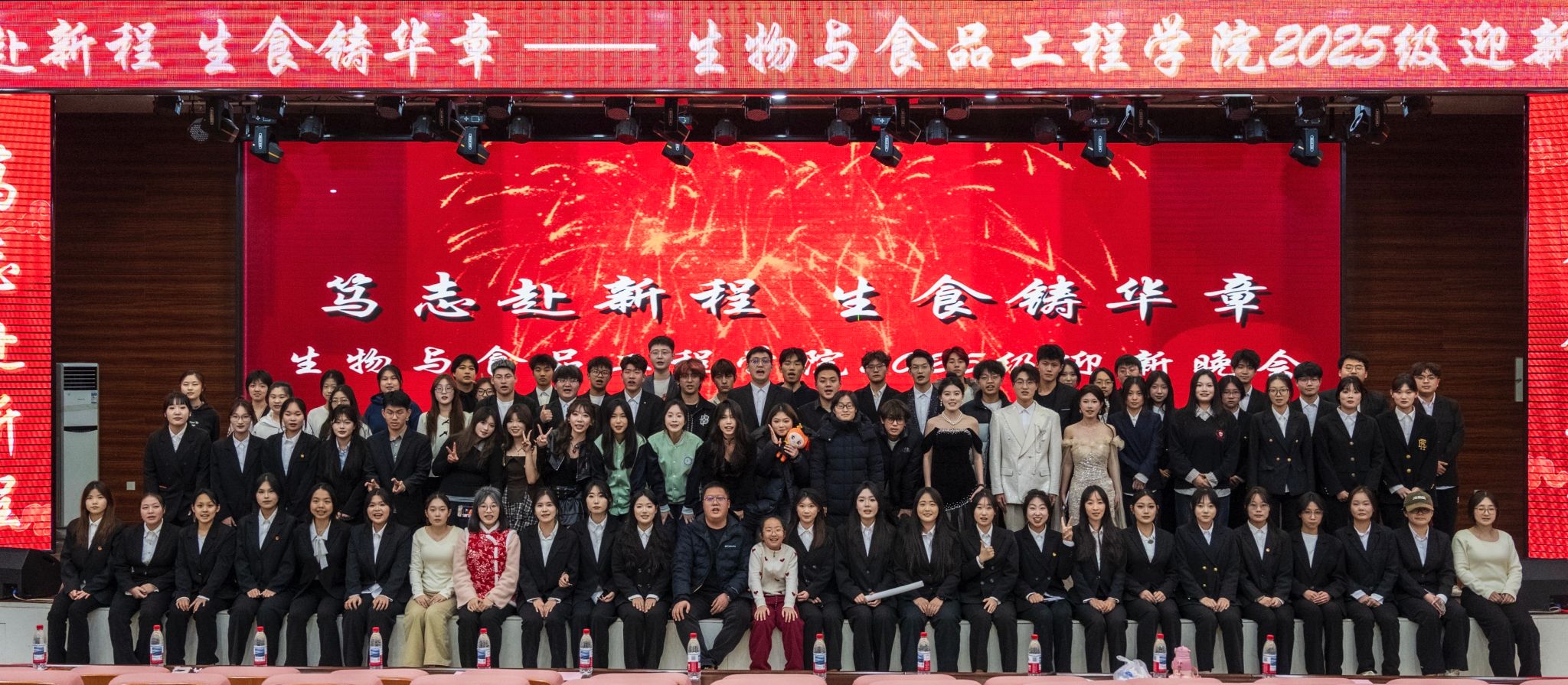 冬韵盎然、岁末启新之际,2025年12月10日,“笃志赴新程,生食铸华章——生物与食品工程学院2025级迎新晚会”在第二教学楼报告厅隆重举行。