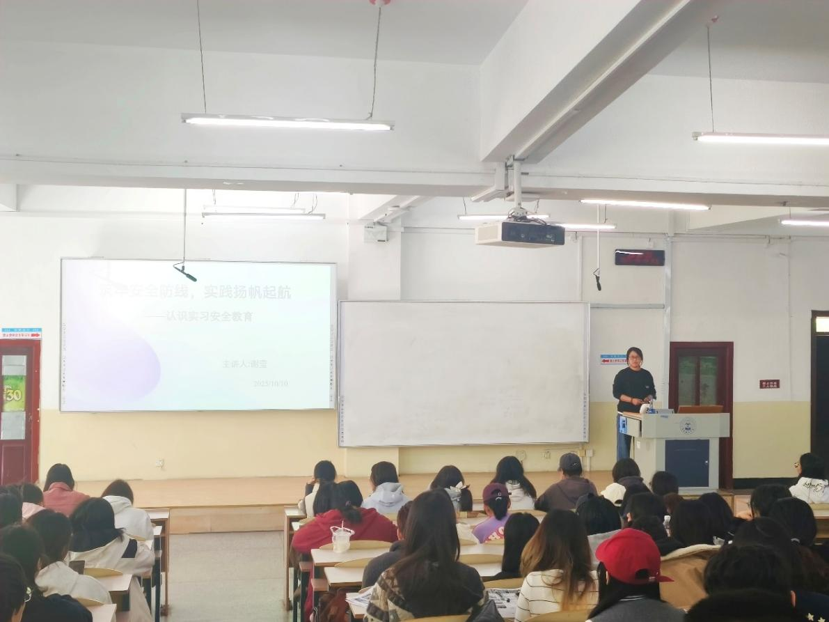 生物与食品工程学院23级学生实习工作即将开展。为牢固树立“安全第一、预防为主”的实习理念,切实提高全体实习学生的安全防范意识和应急处置能力,确保实习工作顺利、平安进行,学院于2025年10月10日在2教110召开了实习安全教育会,生物工程系主任谢莹老师对全体参加实习的学生进行了安全教育培训。