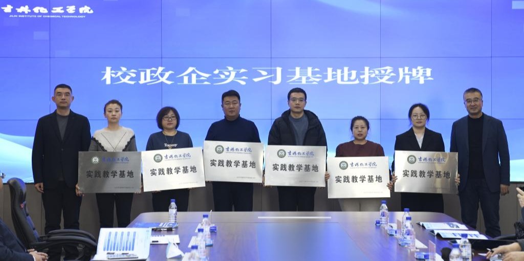 学校党委常委、统战部长孙树文,党委常委、组织部长庞勃为校政企实习基地授牌。