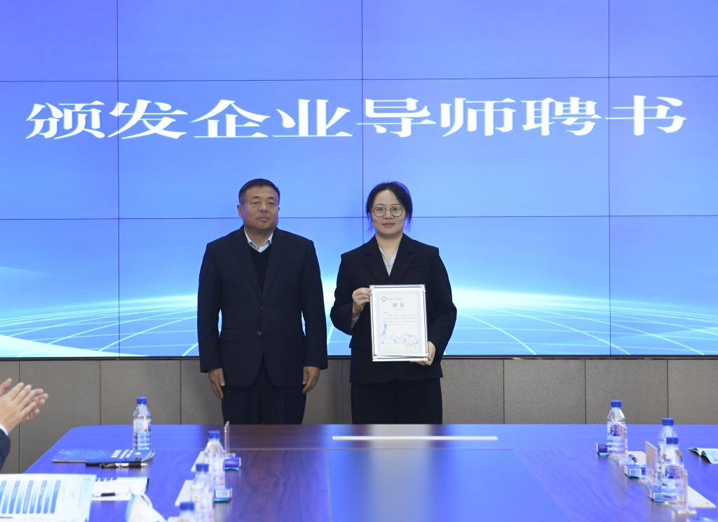 学校党委副书记蔡立峰为参会的中科聚研(吉林)干细胞有限公司等7位企业导师代表颁发聘书。