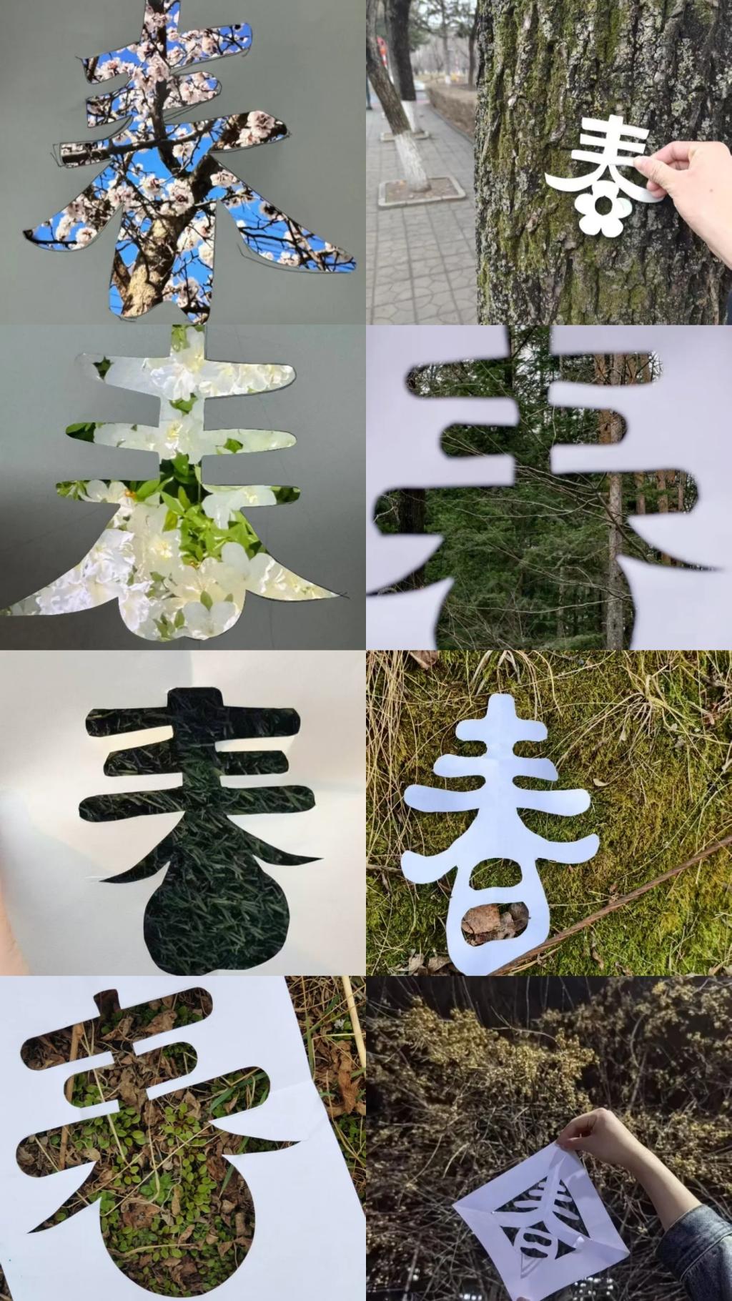紧接着,同学们纷纷展示提前设计好的特色镂空“春”字剪纸,互相学习、交流制作方法,现场气氛热烈非凡。在对剪纸艺术有了深入体验后,同学们手持精心制作的剪纸,漫步在校园的各个角落,自由探寻富有春天气息的场景。娇艳盛开的花朵、嫩绿欲滴的枝叶,都成为同学们镜头下的绝美素材。大家充分发挥想象力,巧妙运用不同的角度、姿势和光影,拍摄出一幅幅独具特色的春日合影。