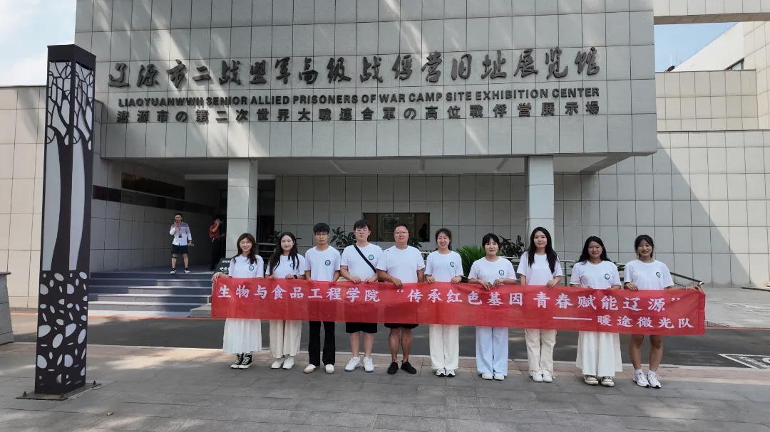 为深入学习贯彻习近平新时代中国特色社会主义思想和党的二十大精神,响应国家乡村振兴战略和“三下乡”社会实践号召,近日,生物与食品工程学院三下乡社会实践暖途微光团队赴吉林省辽源市,开展了以“传承红色基因,青春赋能辽源”为主题的社会实践活动。此次活动旨在弘扬红色文化、激发爱国情怀、助力乡村振兴并实现实践育人。团队先后参观了辽源矿工墓陈列馆和辽源市二战盟军高级战俘营旧址展览馆。