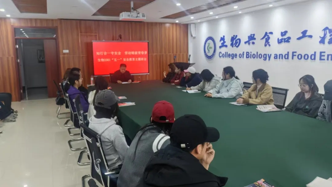 为切实做好"五一"假期学生安全教育工作,生物与食品工程学院于2025年4月25日组织全院学生召开"五一"国际劳动节假期安全教育主题班会。本次班会以"知行合一守安全,劳动铸就青春梦"为主题,各位班主任系统部署假期安排与安全管理工作,确保学生度过平安充实的假期。